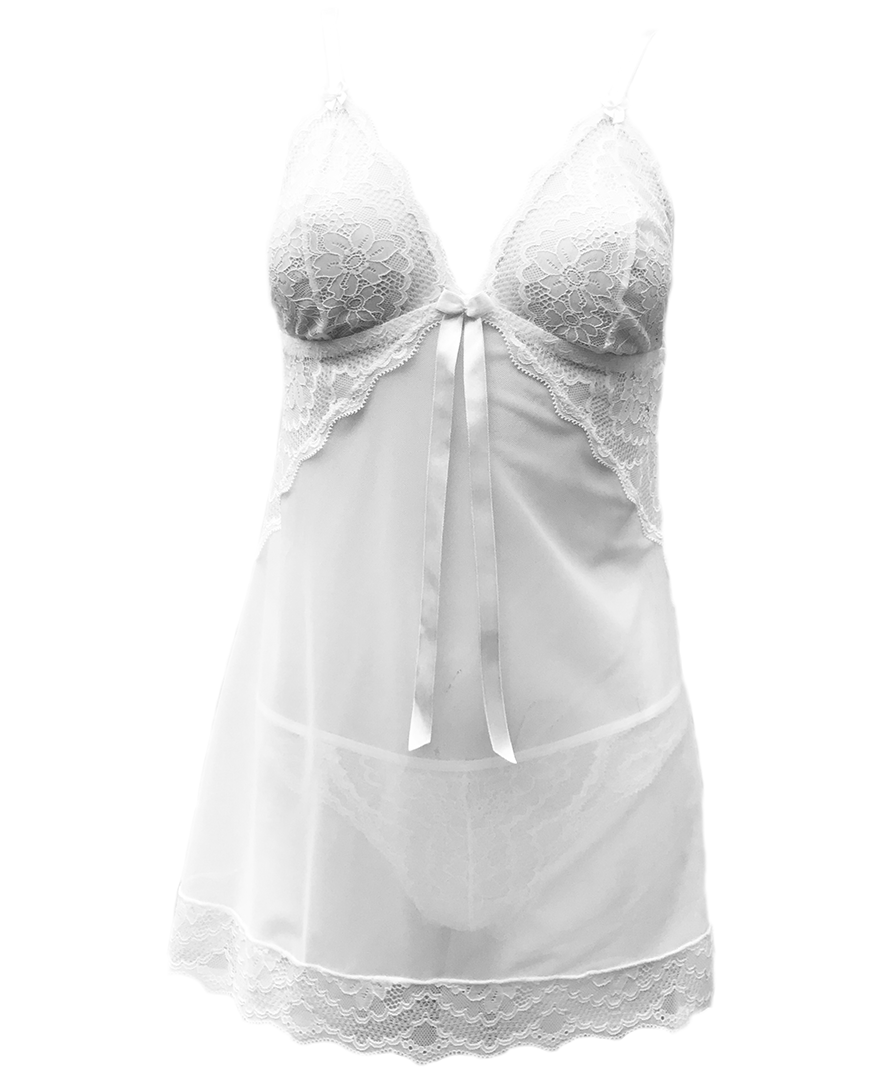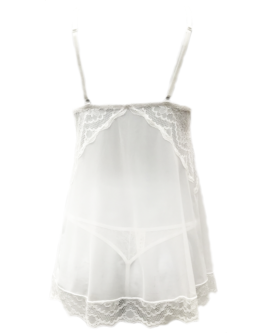 Babydoll con tanga a juego, sutil, en encaje y tul lycrado.