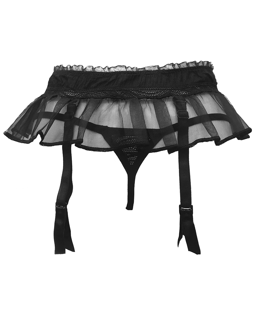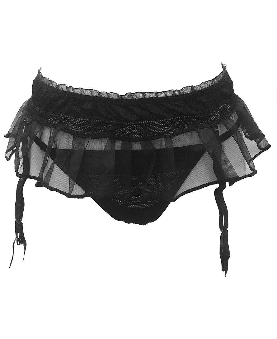 Liguero en encaje y brisa finamente plisada, tirantes ajustables y panty incluido con la opción de su uso de manera sencilla.