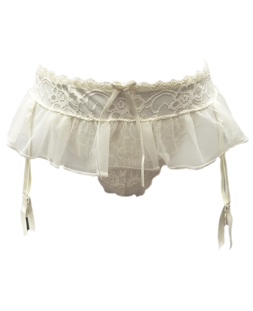 Liguero en encaje y brisa finamente plisada, tirantes ajustables y panty incluido.